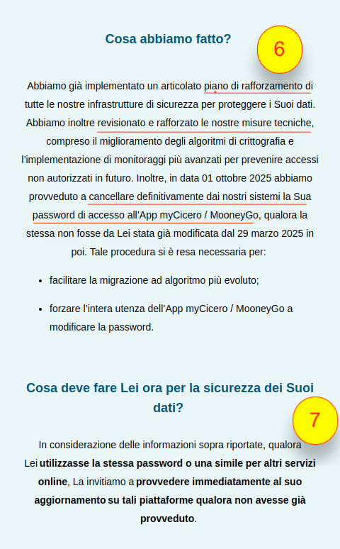 7 e 8) dopo la minuziosa descrizione delle mirabolanti misure adottate da MooneyGo, arriva la consueta presa per i fondelli: cosa dovrebbe fare l'utente per evitare i rischi ed evitare che tutto questo si ripeta. L'utente!