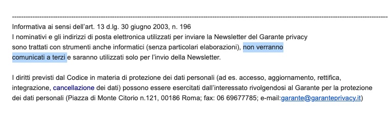 Riavvolgendo il nastro si scopre che un giorno nacque la newsletter del Garante. Bisogna tornare indietro di più di venti anni, un'epoca ormai dimenticata, di cui effettivamente resta ben poco, forse solo un ricordo sbiadito e qualche email, grazie ai generosi tempi di conservazione della posta elettronica consentiti dalla gestione sgarzullina del Garante.