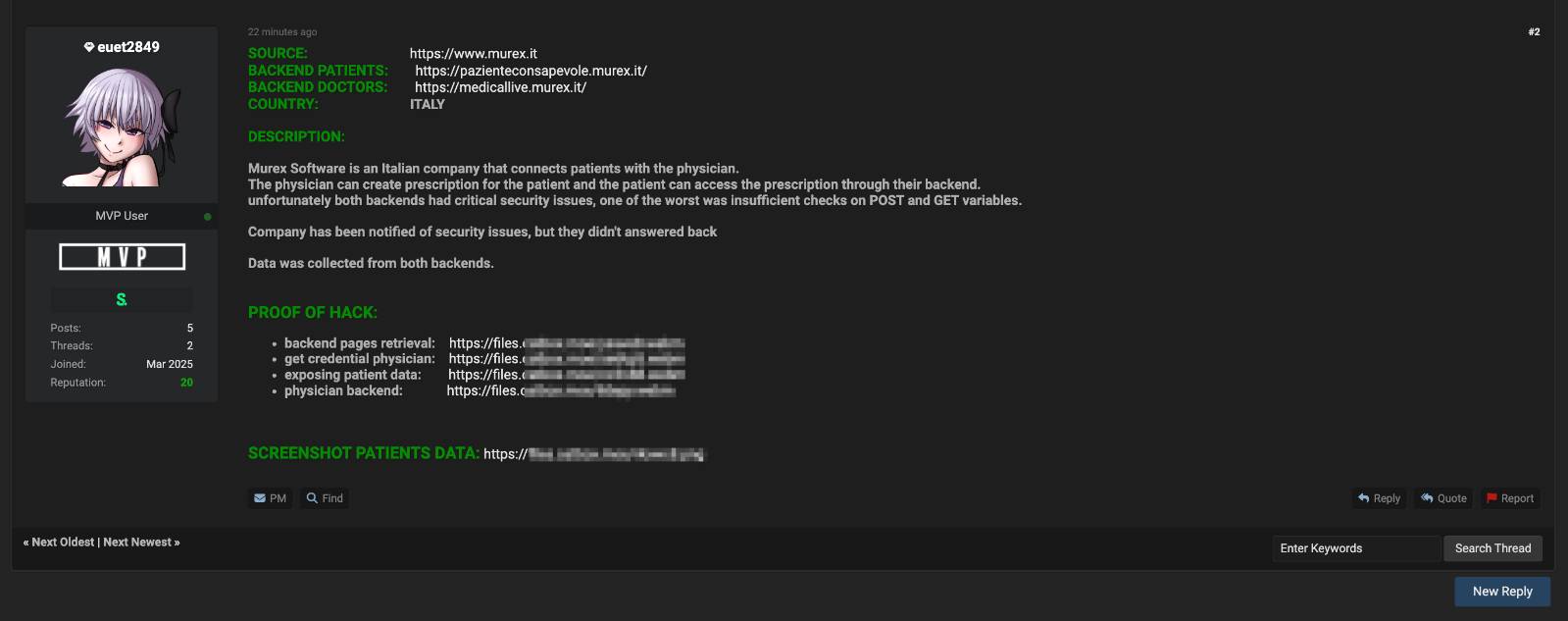 Eh, porcavacca, non ci sono dubbi, si tratta di un sacco di dati sottratti dai database di MUREX, l'azienda che gestisce Medical Live e PazienteConsapevole.