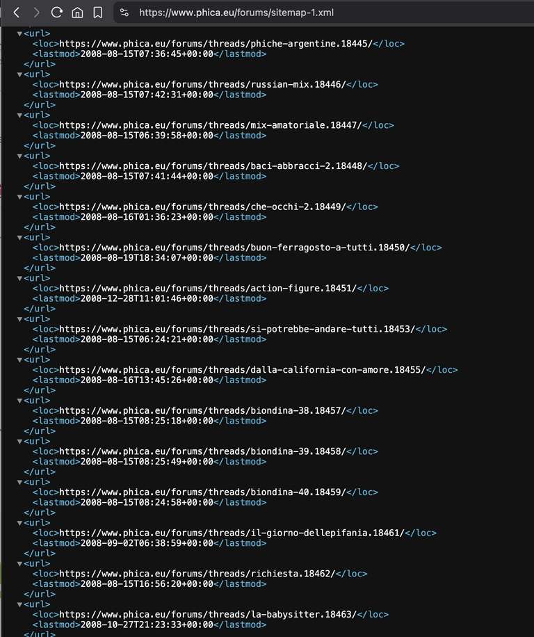1) la sitemap di phica è sempre li, al suo posto, con tutti i link in bella evidenza e sono quindi indicizzati tutti i thread (il titolo) e tutti gli url degli album originariamente presenti. Contengono dati personali.