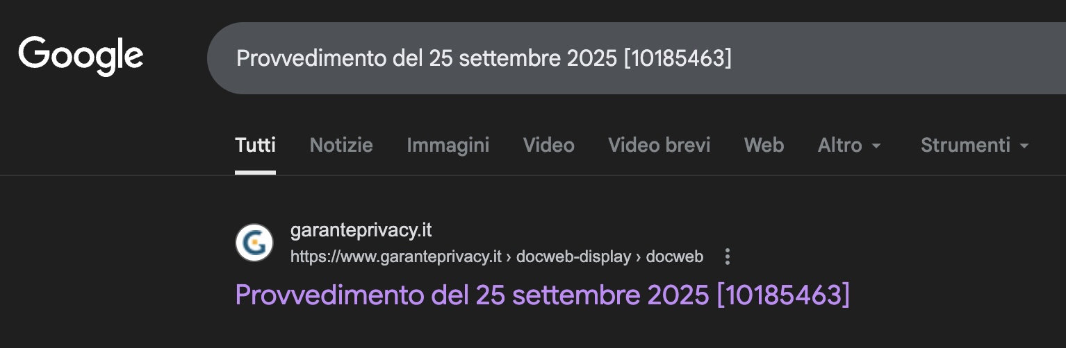 La differenza è dovuta al fatto che il contenuto della pagina, il provvedimento cercato, è stato rimosso dal sito del Garante. Questo il link alla pagina che ora si presenta così: