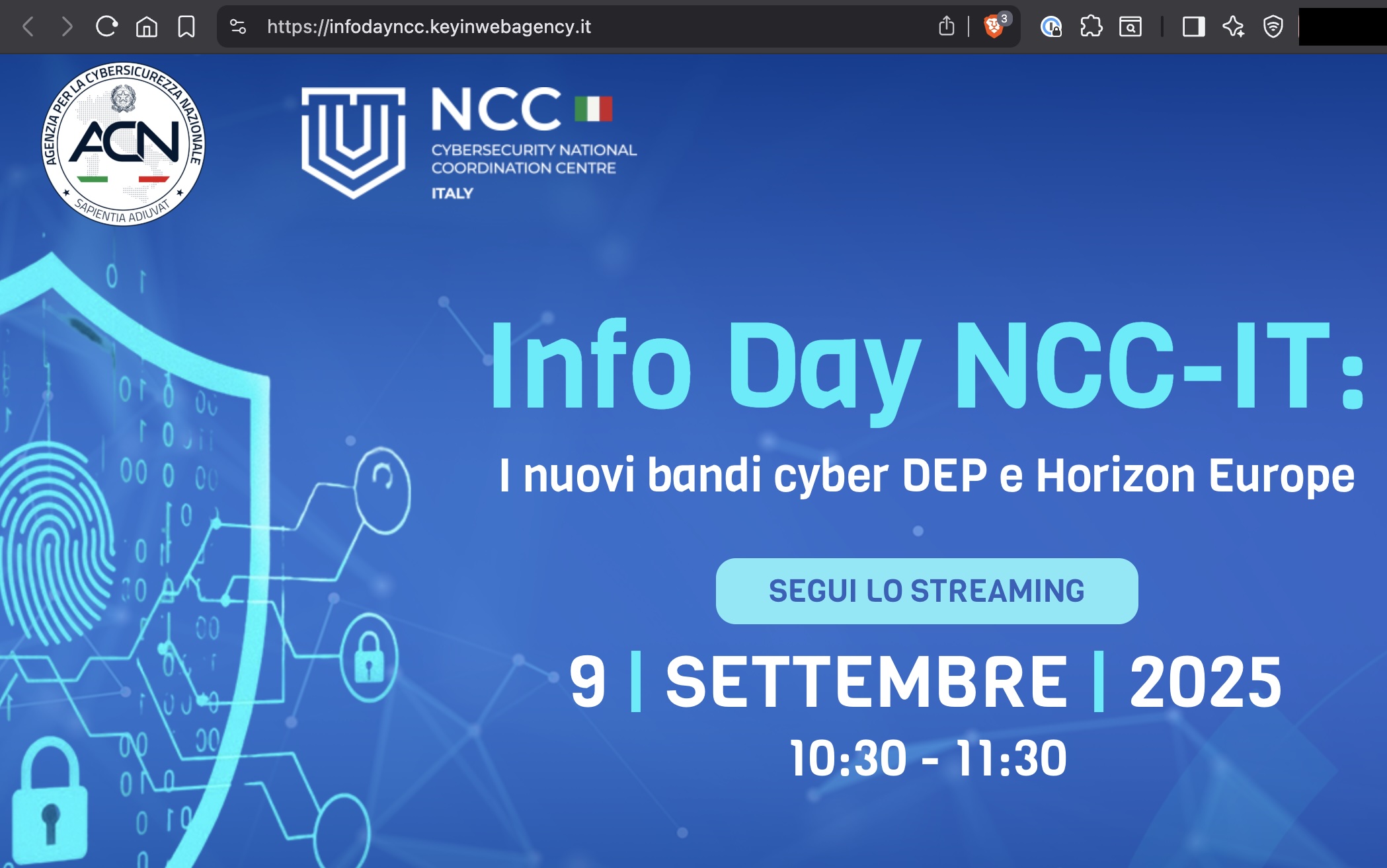Info Day NCC-IT - roba tosta... in programma per il 9 settembre. Bisogna registrarsi per accedere al webinar... e nel modulo di registrazione campeggia il link all'informativa.