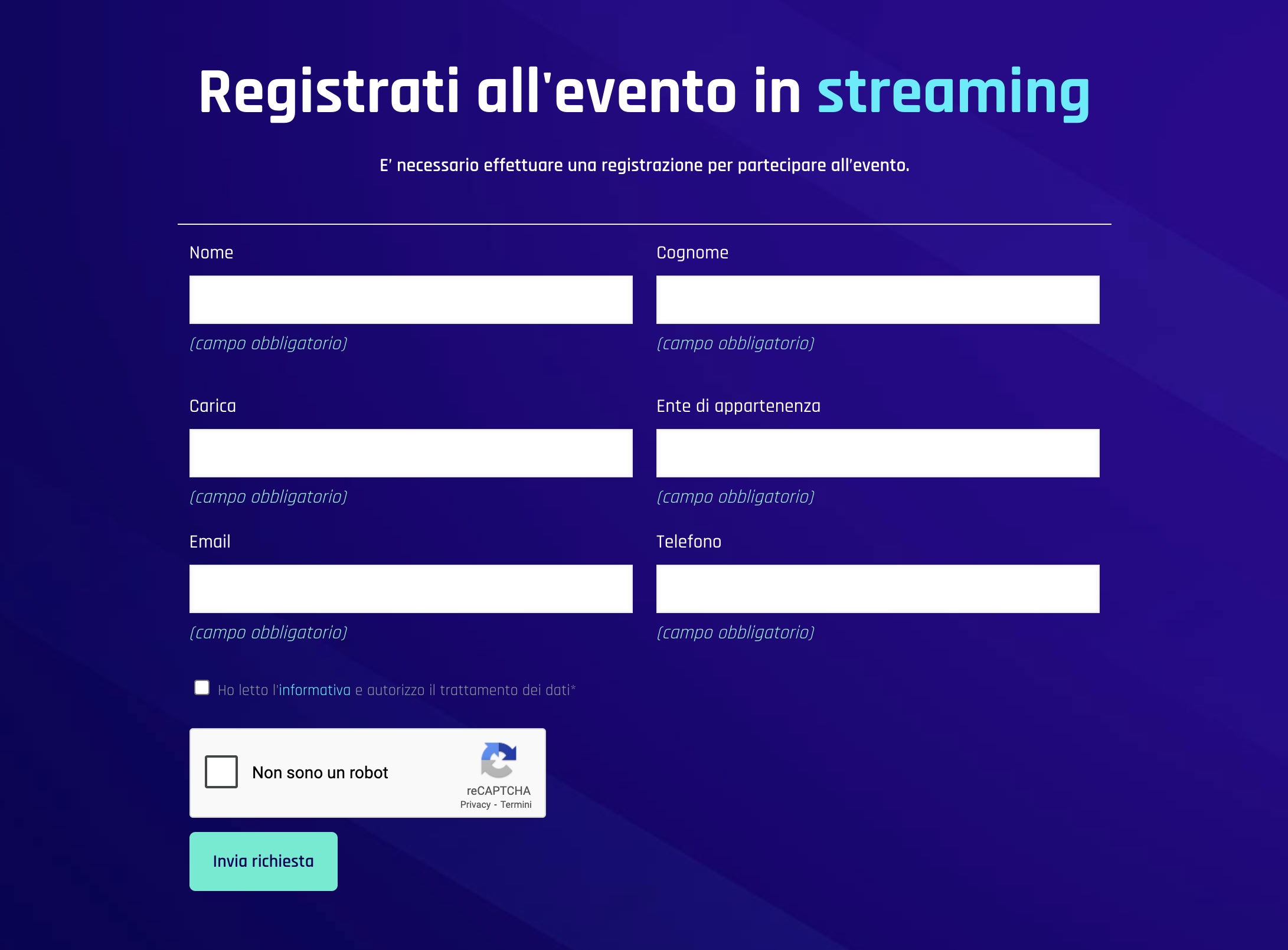 Peccato che il sito sia online, che raccolga già da tempo dati personali ed iscrizioni e che tutto questo sia riferito ad ACN come titolare del trattamento.
