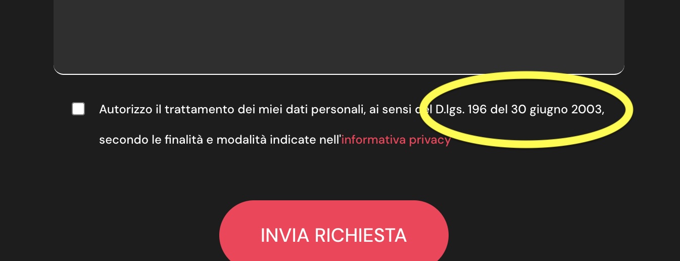 Beh, in effetti non ci si sarebbe potuti aspettare nulla di meglio da una web agency che mette sulla propria homepage uno strafalcione colossale: un riferimento di legge sbagliato. Dal 2018 ad oggi non se ne sono accorti. Complimenti.