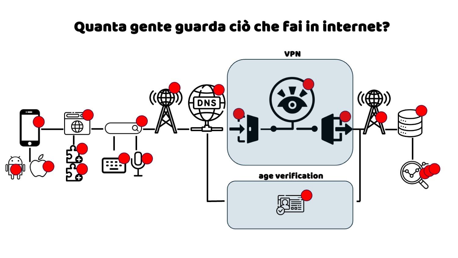 Anche questo aspetto dovrebbe essere ormai molto chiaro: il gestore della VPN ha un punto di osservazione privilegiato e vede tutto. Si può solo sperare che sia una persona onesta, ma se ci si sbaglia, si mette la propria vita digitale nelle mani del proprio aguzzino.