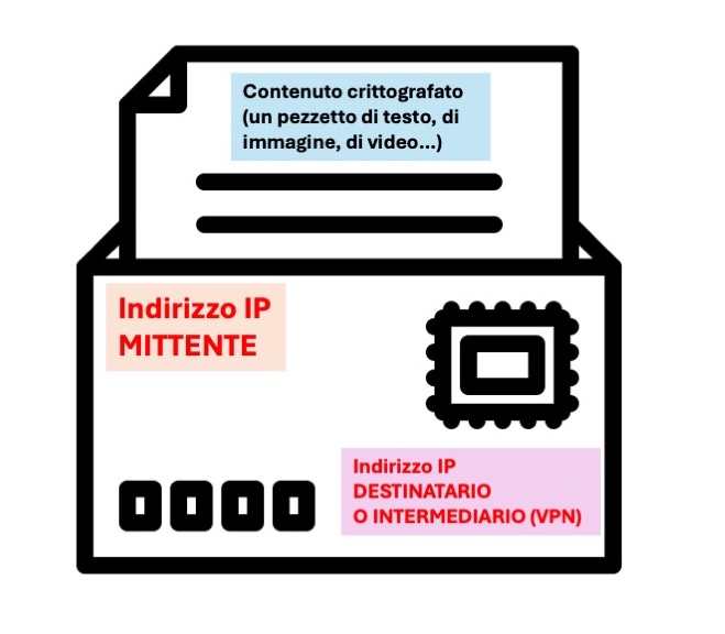 I dati contenuti in questi pacchetti non sono visibili durante il loro transito, proprio come accade per una busta chiusa, ma sia il mittente che il destinatario sono ben visibili. Ciò accade con le connessioni verso i siti dotati di protocollo HTTPS, che a differenza del traffico HTTP (senza S) è crittografato (ovvero imbustato e non visibile durante il transito).